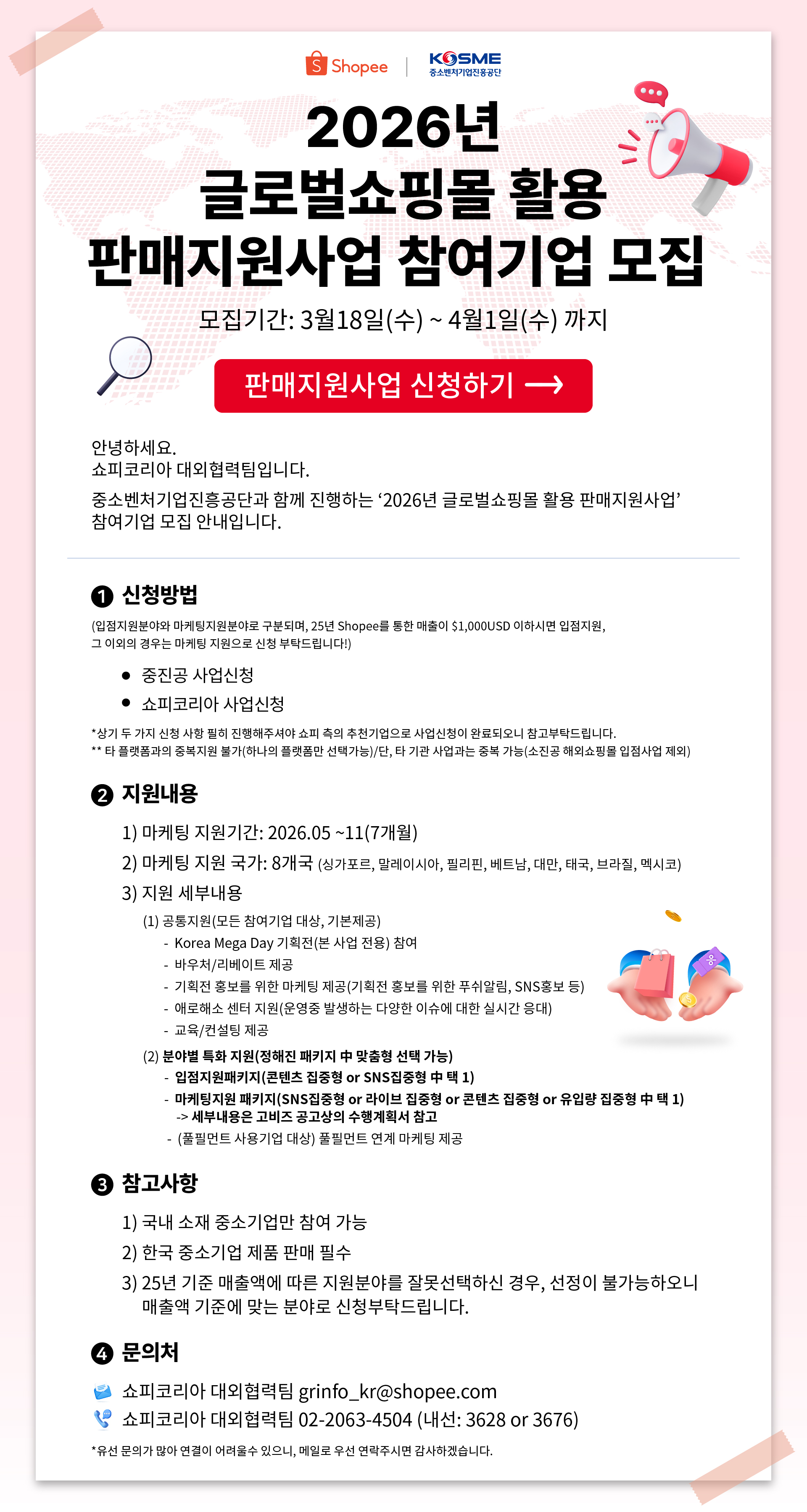 > 쇼피코리아 대외협력팀 02-2063-4504(내선 : 3628 or 3676)